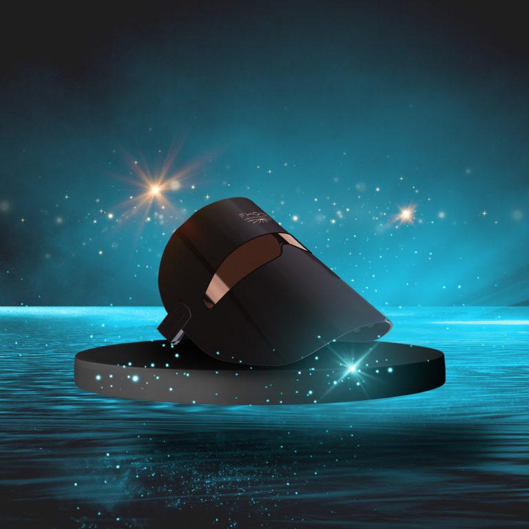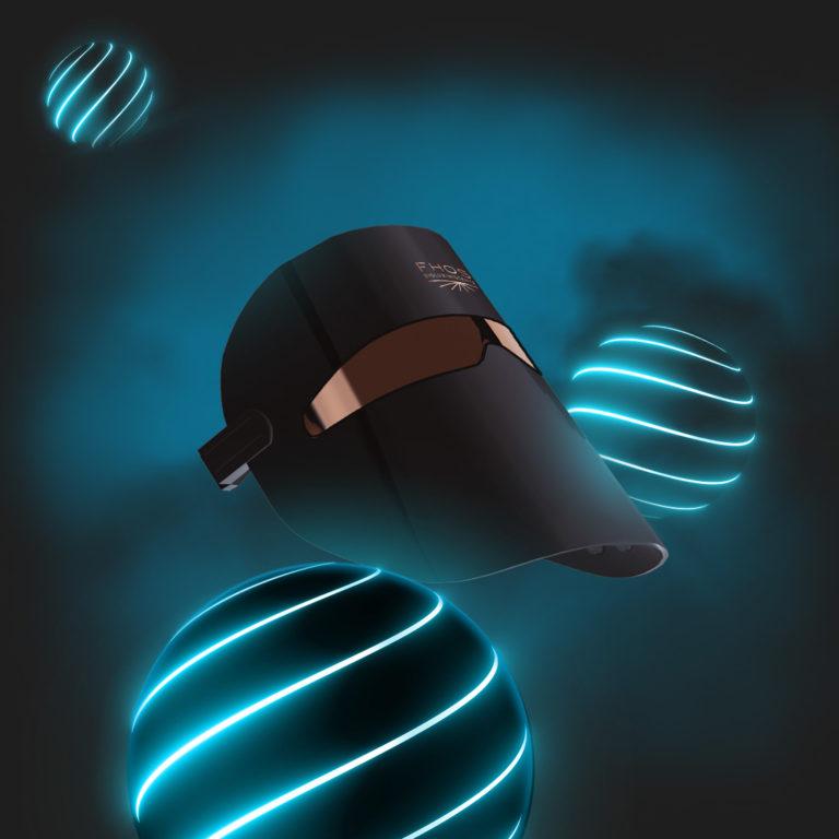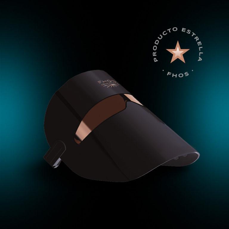 Máscara facial con fotones de luz led para tratamiento fotolumínico. Diseñada para trabajar con los productos FHOS BIOLUMINISCENTES, ofrecer resultados incomparables.
